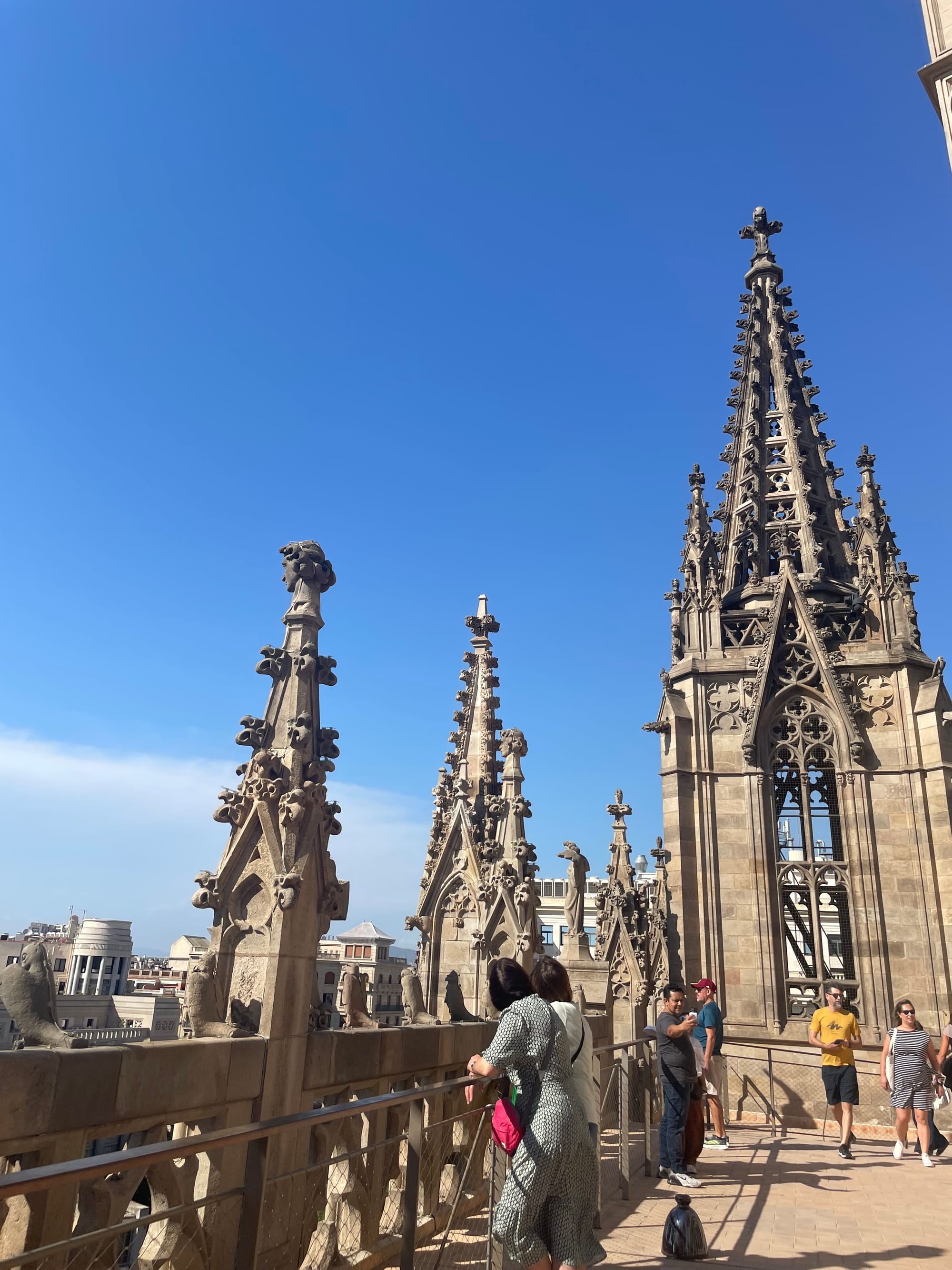 Auch von innen fand ich die Kathedrale sehr beeindruckend, aber ich denke das Beste war für mich die Aussicht vom Dach aus. Dafür musste man sich anstellen, was bei uns maximal fünf Minuten dauerte und konnte dann durch eine schmale Wendeltreppe auf's Dach gelangen. Oben konnte man dann ein wenig herumlaufen und die Aussicht über Barcelona genießen.
