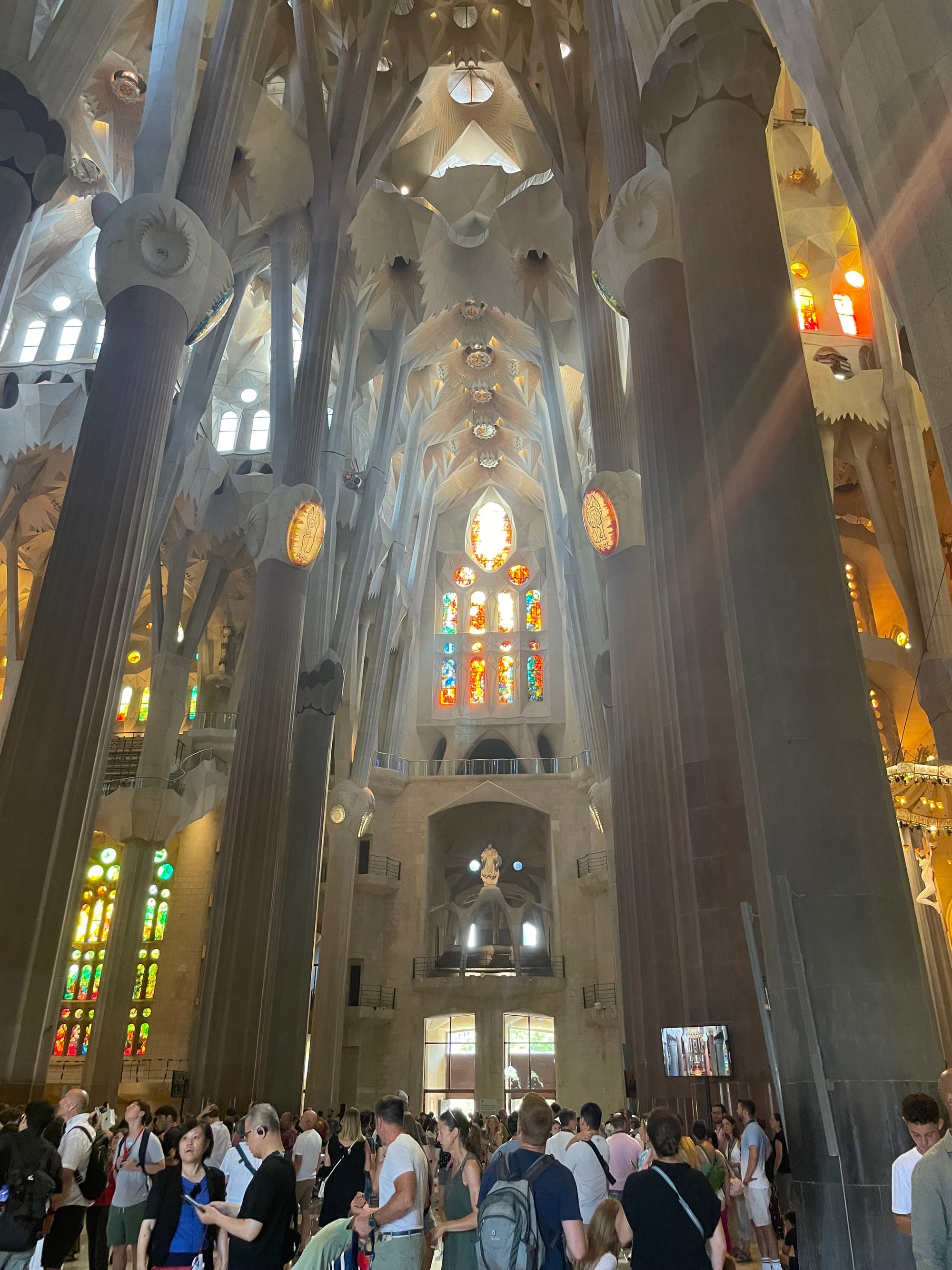 Wow! Wohl die imposanteste Kirche die ich je gesehen habe. Die Sagrada Família ist ebenso von Gaudí entworfen und gilt als sein Hauptwerk. Begonnen wurde ihr Bau in 1882 und er dauert tatsächlich bis heute an. Nicht nur die Fassade ist sehr beeindruckend, auch von innen ist die Kirche ein architektonisches Meisterwerk. Besonders schön ist auch das Lichtspiel mit den riesigen farbigen Fenstern, die buntes Licht an die Böden und Wände werfen. Zudem ist die Größe sehr beeindruckend. Da der Turm mit 172 Metern gerade noch gebaut wird, ist der zur Zeit höchste Turm der Kirche ganze 158 Meter hoch! Auch hier gibt es einen ausleihbaren Audioguide. Dafür sind die Eintritte von 30€ bis 40€ pro Person hier auch teuer. Offen ist die Sagrada Família von Montag bis Freitag 9:00 Uhr bis 20:00 Uhr. Am Samstag von 9:00 Uhr bis 18:00 Uhr und Sonntags von 10:30 Uhr bis 20:00 Uhr. Ich würde einen Besuch auf jeden Fall empfehlen!