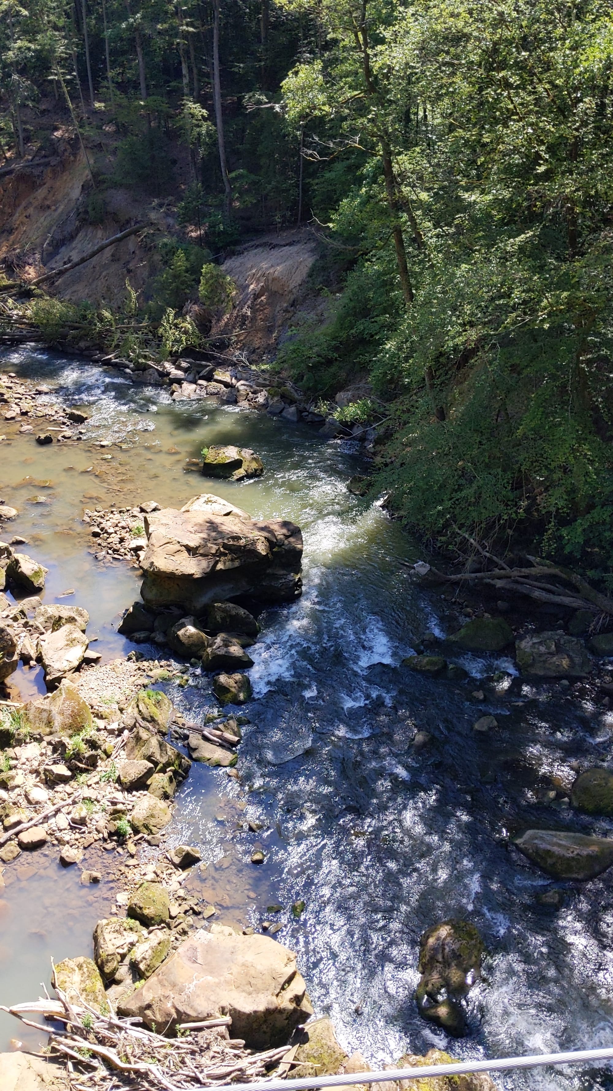 Neben den Stromschnellen gibt es noch eine Hängebrücke, die meiner Meinung nach auch (zu) schön wackelt!